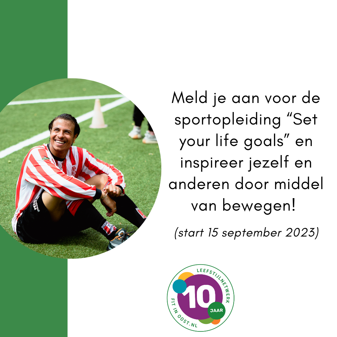 Naast dat we met regelmaat zelf diverse cursussen aanbieden, vinden we het leuk en belangrijk om ook aandacht aan het trainingsaanbod van onze netwerkpartners te besteden. Daarom attenderen we je graag op de sportopleiding “Set your life goals” van Stichting Life Goals die volgende week vrijdag 15 september al van start gaat. Hou jij van sport, wil jij je talenten ontdekken en ontwikkelen door middel van sport en wil je graag nieuwe mensen leren kennen? Meld je dan aan!