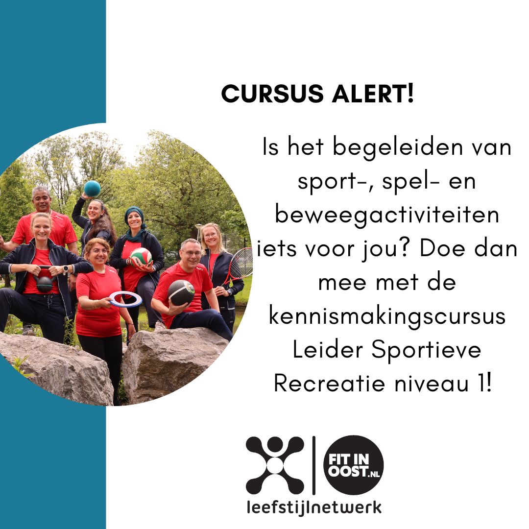 Heb jij affiniteit met sporten en bewegen en lijkt het jou leuk om beweegactiviteiten in de buurt te begeleiden? Dan zou de kennismakingscursus Leider Sportieve Recreatie niveau 1 (LSR) zomaar iets voor jou kunnen zijn!
