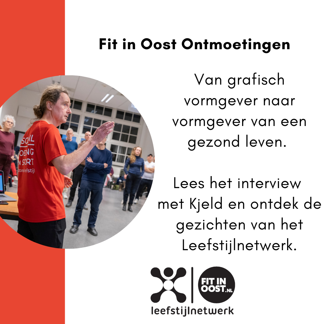 Het zaadje was geplant: Met het enthousiasme wat Kjeld zelf had ontdekt en ontwikkeld voor het naleven van een gezonde leefstijl wilde hij ook anderen inspireren. Hij doet onderzoek naar divers trainings- en opleidingsaanbod en schoolt zich op deze manier om tot BGN-gewichtsconsulent en personal trainer op het gebied van voeding en sport. Wanneer hij verder zoekt naar wat er nog meer gebeurt binnen deze sector belandt hij bij het lokale aanbod van Fit in Oost. Hij schrijft zich in voor de workshop Buurtsportleider volwassenen en senioren en loopt op eigen initiatief aansluitend de hele zomer mee met buurtsportcoach en sportinstructeur Nana. Binnen Fit in Oost lijkt Kjeld een plek te hebben gevonden waar hij als een vis in het water is. Zo werkt hij mee aan de Beweegdag & Fittest en initieert hij vanuit zijn in 2025 gestarte onderneming VSGL een actieve lezing over voeding, sport en fit oud worden voor buurtbewoners. ‘Voeding vormt tweederde van je fitheid en is onlosmakelijk verbonden met bewegen.’ Kjeld lacht bescheiden als hij er aan toevoegt dat zijn lezing voor herhaling vatbaar is. ‘Er kwamen bijna veertig mensen op af!’