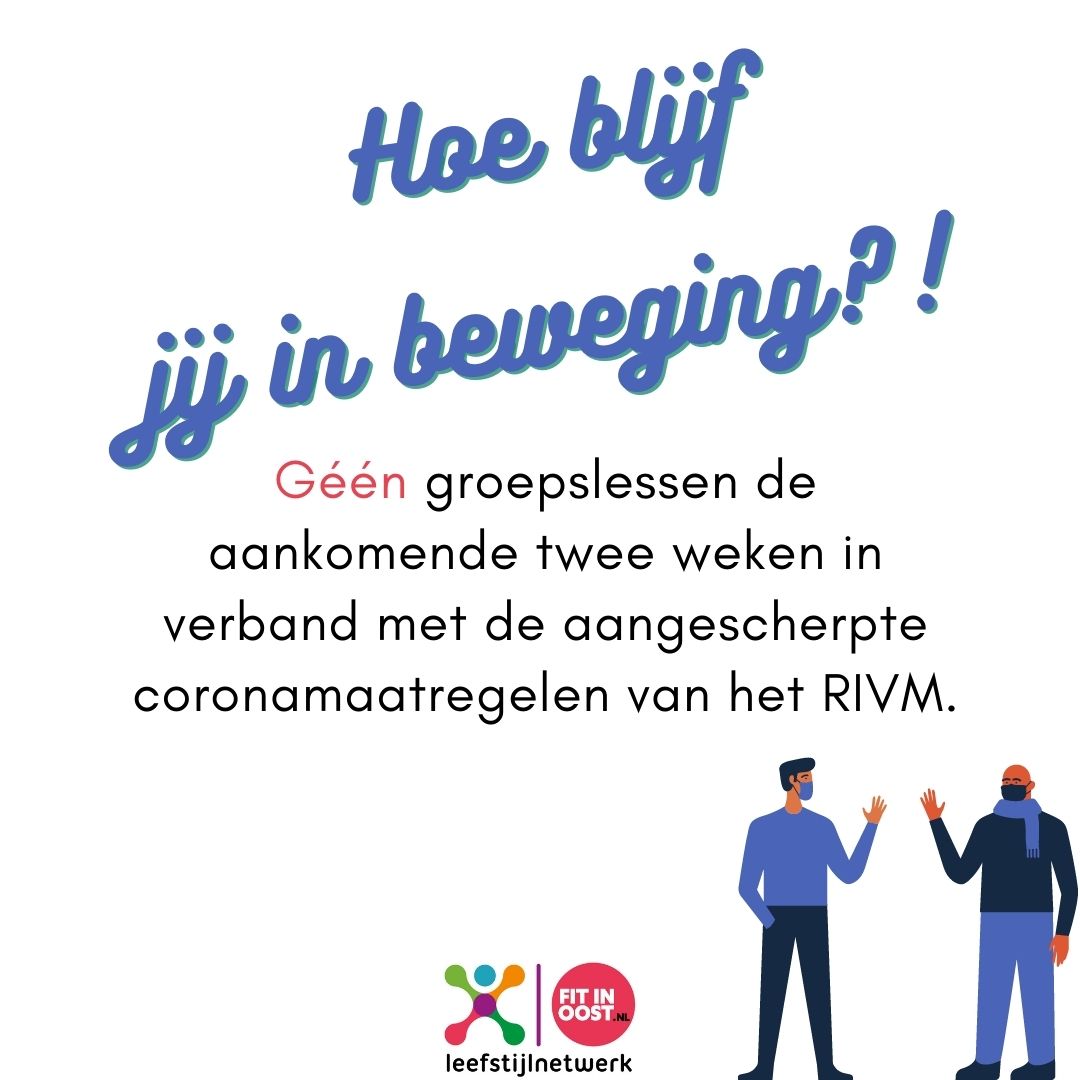 Afgelopen dinsdagavond kondigde president Rutte de aangescherpte maatregelen aan. Een belangrijke regel die invloed heeft op het sportaanbod is dat er voor de aankomende twee weken geldt dat alle groepslessen op sportlocaties niet door gaan.