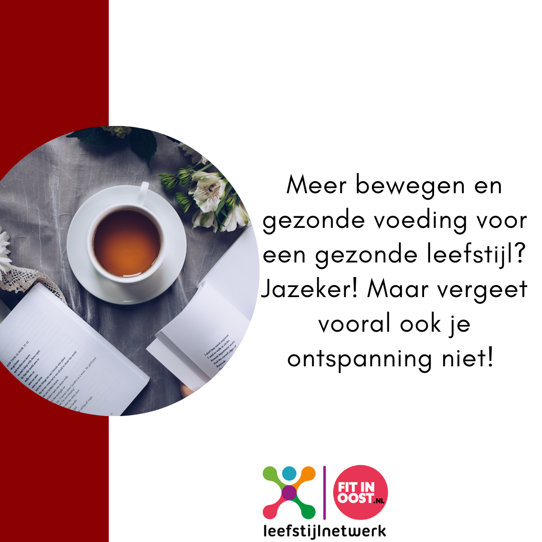 Als we onze leefstijl willen aanpassen en gezonder willen worden, is het dus heel belangrijk om naast gezonde voeding en voldoende beweging ook onze ontspanning niet te vergeten. Vind een ontspannende activiteit die bij je past, geef je lichaam voldoende (nacht)rust om weer bij te kunnen tanken en help jezelf weer een stap verder op weg richting je gezonde leefstijl!