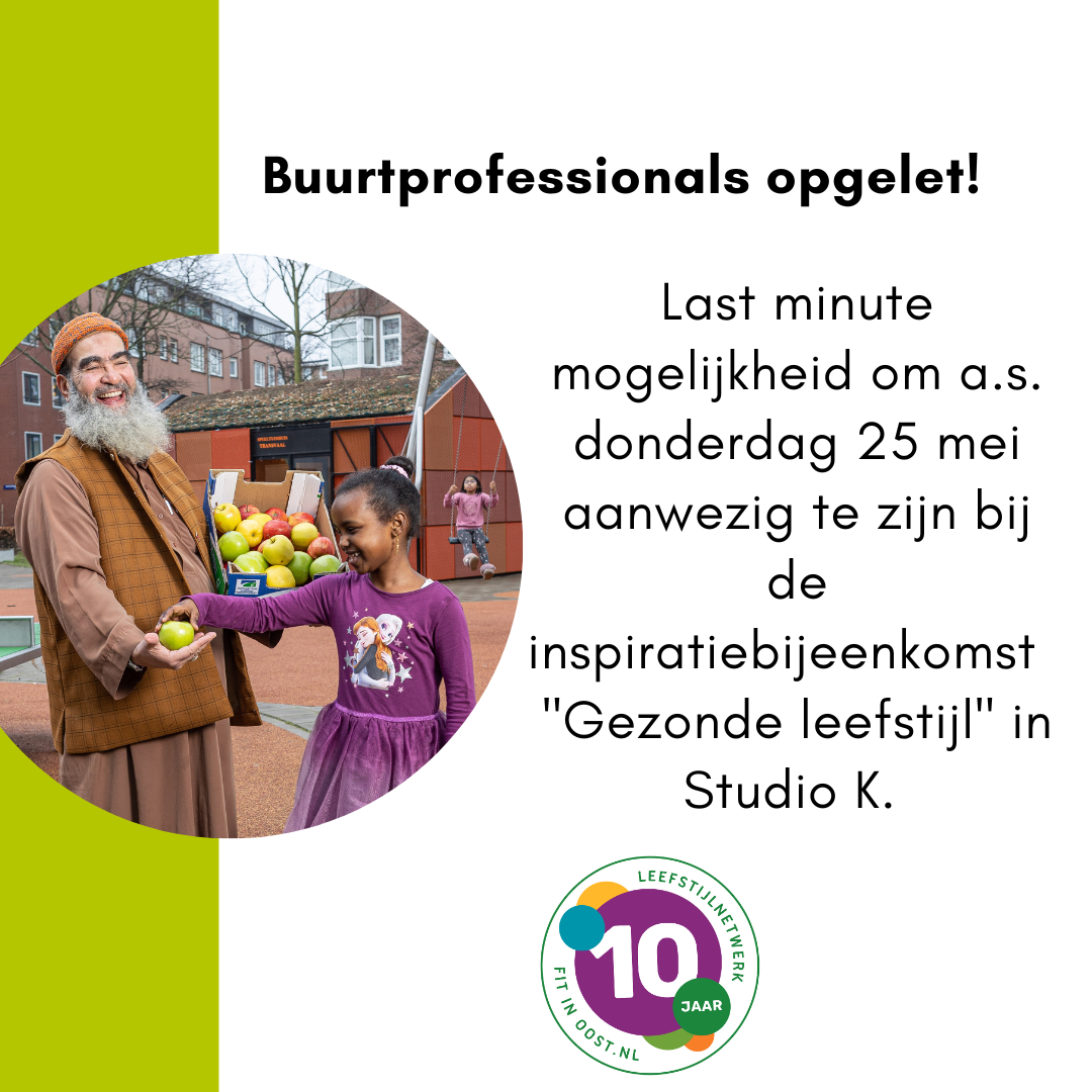 Heb jij interesse om aanwezig te zijn en ben je aankomende donderdag tussen 12:30 – 14:30u in de gelegenheid om naar Studio K te komen? Meld je dan snel aan door een mailtje te sturen aan gezond.oost@amsterdam.nl !