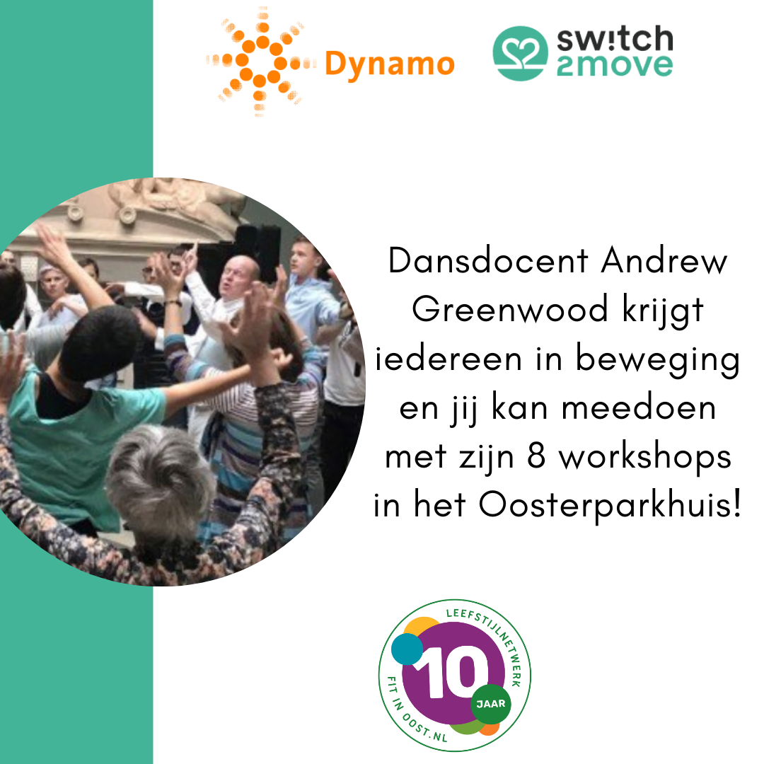Vanaf woensdag 11 oktober organiseert Dynamo Amsterdam in samenwerking met Switch2Move en docent Andrew Greenwood (danser en regisseur) 8 workshops over hoe je vanuit je eigen kracht in beweging kan komen op muziek.