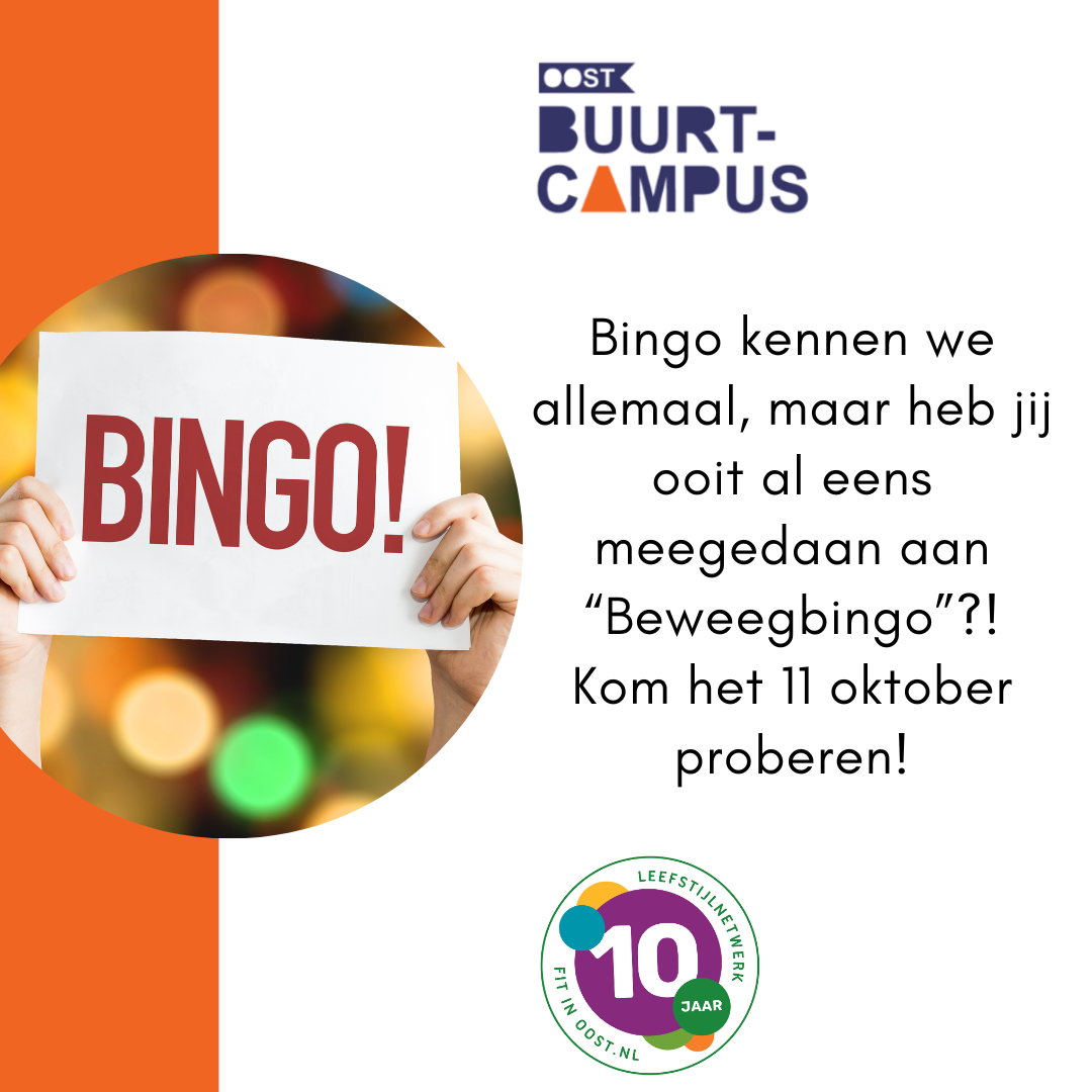 Op woensdag 11 oktober om 14:00 uur nodigen studenten van de Buurtcampus Oost 55+ers van harte uit voor een potje beweegbingo in de OBA aan de Linnaeusstraat. Aanmelden is niet nodig. Kom gewoon gezellig langs!