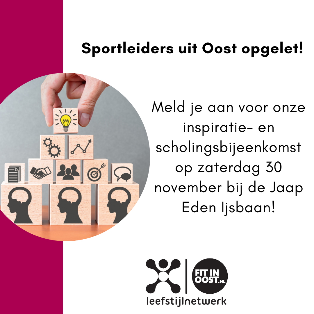 Aanmelden voor de scholings- en inspriatiedag kan via deze link. Iedereen mag iemand meenemen die interesse heeft om ook sportleider in Oost te worden!